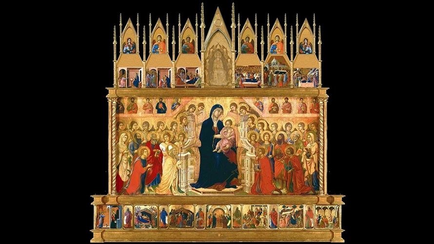 De Sienese kunstenaar schilderde de Maestà tussen 1308 en 1311 voor de kathedraal van zijn stad. Een detail van een paneel uit het grote veelluik is de afbeelding die is gekozen voor de CL-poster voor Pasen 20269 oktober 1308 is een keerpunt in de geschiedenis van de westerse kunst, op het kruispunt tussen de Byzantijnse en de gotische traditie. De Opera del Duomo di Siena gaf Duccio di Buoninsegna de opdracht om te creëren wat het kloppende hart van de stad zou worden: de Maestà, bestemd voor het hoogaltaar van een van de mooiste kathedralen ter wereld. Het contract dat aan Duccio werd opgelegd was uiterst bindend: de schilder moest in loondienst werken en mocht geen andere verplichtingen aangaan totdat het werk voltooid was. Duccio, toen zestig jaar oud, bevond zich op het hoogtepunt van zijn artistieke rijpheid en bracht in dit werk al zijn ervaring met de traditie in, verrijkt door een voortdurende dialoog met de grote kunstenaars van zijn tijd, bovenal Cimabue en Giotto.